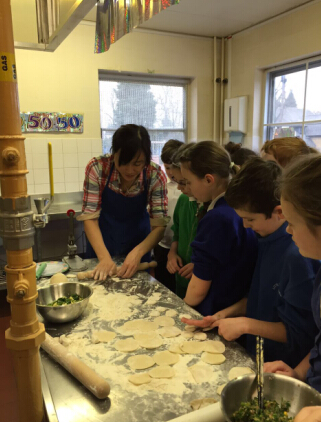 最受大龄儿童欢迎的活动是趣味动物水墨画和包饺子。该活动的主要目的是教授他们正确握笔姿势,初步掌握使用浓墨、淡墨的技巧,鼓励他们大胆想象,创作不同的动物形态,体验水墨画的乐趣。在创作过程中孩子们充分发挥他们的想象力,创作出外星狗、孤独企鹅、小鸡、鸭子、外星人、憨态可掬的熊猫等趣味作品,他们迫不及待地想把作品带回家与父母分享。包饺子活动在Little Bowden学校的厨房进行。为了迎合不同的口味,孔子学院精心准备了猪肉蔬菜、猪肉玉米和蔬菜鸡蛋馅儿。孩子们热火朝天的擀皮、包馅后,一盘盘形态各异的西方饺子新鲜出炉。当一盘盘水煮和香煎水饺呈现在孩子面前时,他们都禁不住狼吞虎咽,为自己制作的美食拍手叫好。