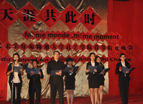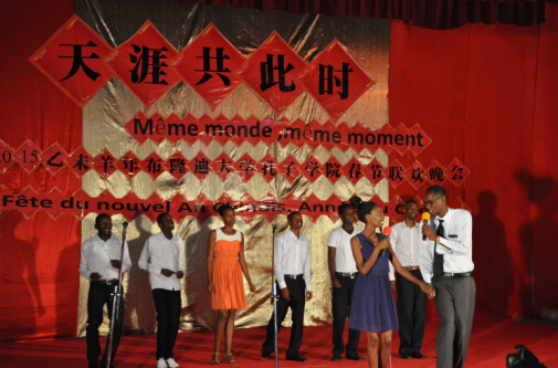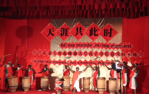 2月13日,布隆迪大学孔子学院举办了2015乙未羊年“天涯共此时”春节联欢会活动。中布友协会长罗斯女士、中资机构联谊会会长方小平先生、布隆迪大学孔子学院中学教学点校长、卢旺达大学教育学院孔子学院院长及全体教师、布隆迪大学孔子学院师生及中国驻布隆迪使馆工作人员、驻布中资机构代表、华人华侨及等600人参加了活动。