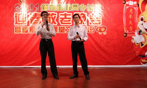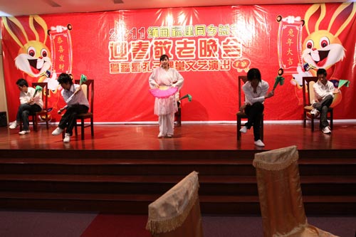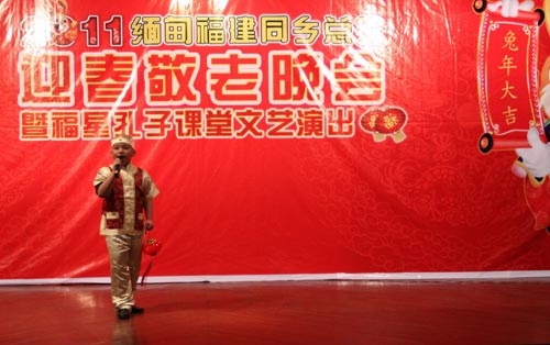 缅甸福星语言与电脑学苑孔子课堂的师生们在缅甸仰光威胜霸皇宫举行的“缅甸福建同乡总会迎春敬老晚会暨福星学苑孔子课堂文艺演出”大型联欢晚会上给缅甸各界带来了专场文艺演出,引来观众们阵阵掌声和喝彩声。