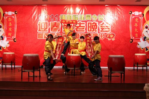 来自国家汉办的外派教师首先进行了龙鼓表演。