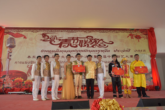 泰东北第三届中文十大歌手比赛冠、亚、季军选手合影