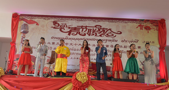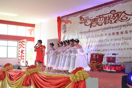 2月15日,玛哈沙拉坎大学孔子学院举办第三届泰东北中文十大歌手比赛总决赛。从初赛中脱颖而出的17组参赛选手同台竞技。中国驻孔敬领事馆总领事李名刚、玛哈沙拉坎府次长素猜、玛哈沙拉坎市市长几地沙、色军市市长格穆、班派市市长布兰萨、玛哈沙拉坎市副市长万罗•万纳巴陶、色军市副市长苏拉猜•萨三里等观看了比赛。