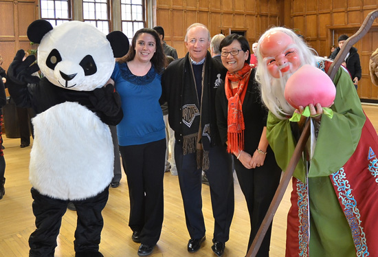 与“大熊猫”和“寿星”合影
