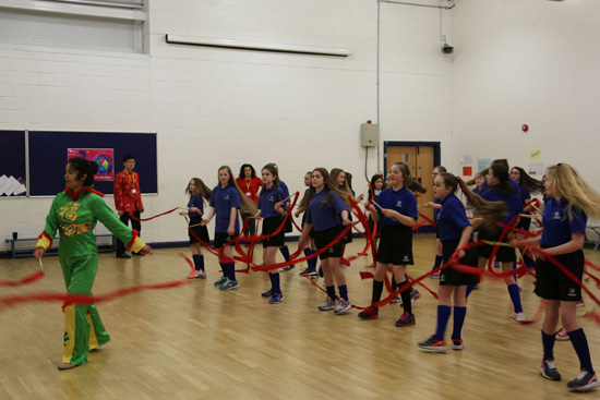 2月9日至13日,在中国羊年春节来临之际,英国IOE孔院下属的圣查德中学孔子课堂举办了为期一周的庆祝春节系列文化活动,来自全校七至九年级的400多名学生亲身体验了中国民族舞蹈、中国书法、吹画、舞狮及功夫等富有中国特色的文化活动。