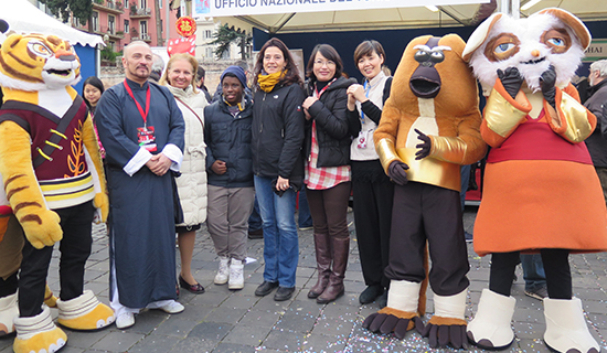 经孔院教师们精心布置的“孔院中国文化体验区”吸引了众多罗马市民驻足。孔院教师用流利的意大利语和辅助图画讲解“春节”和“十二生肖”的故事;许多罗马市民学会了说“你好”、“谢谢”、“过年好”、“羊年大吉”,并将印有中国吉祥话的汉语词卡带回家;当地民众不仅对汉语表现出极大热情,还跟孔院教师一起练太极、提起笔来用书法表达他们对中文的喜爱和对中国新年的祝福。