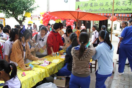 此外,高三汉语专业班的学生还把孔子课堂布置成“魅影室”,播放中国电影——《功夫》、《花木兰》、《大话西游》,等等。为了让低年级的学生更容易理解电影内容,高三的学生边播放电影,边穿插泰语解释。