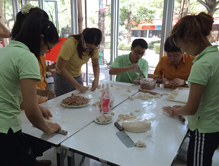在中国,套圈圈是春节时老少皆宜的街头游戏项目,此次也被明满学校孔子课堂的老师们搬到了民俗项目中,老师们更是自己动手制作铁圈,让学生们体会游戏的快乐。套圈圈成为此次“春节民俗开放日”中最具特色的一项活动。而包饺子更是春节时家家户户必须进行的活动,饺子作为中华民族的传统美食已经享誉世界,为了让学校的学生们能够品尝到正宗的中国饺子,明满学校孔子课堂的中国老师们自己动手,从拌馅、和面、擀皮儿到包饺子、煮饺子的每一个过程都亲自动手、用心制作,为同学们送上了中国最具特色的传统食物——饺子。