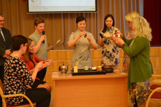 拉脱维亚时间2015年2月12日下午3:20,一场别开生面的茶艺观摩与体验活动在里加文化中学礼堂中拉开序幕,这是拉脱维亚大学孔子学院下设里加文化中学孔子课堂春节系列文化活动的重头戏,也是首届在拉脱维亚国内孔子课堂举办的茶艺主题活动。