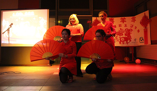 2月18日,法国阿尔多瓦大学孔子学院在该校举办“喜羊羊”春节联欢晚会。汉学系、孔子学院师生,南京大学、中山大学交换生和其他中国留学生等近150人参加了晚会。
