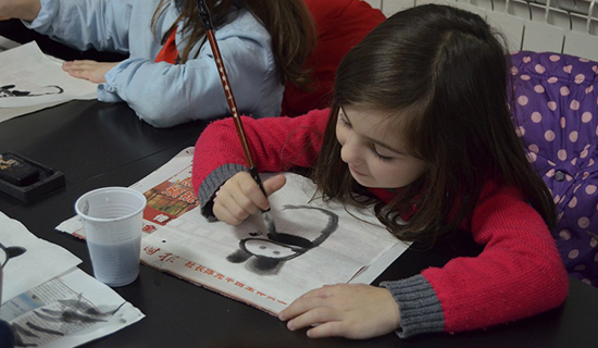 活动在罗马尼亚语版《你好,中国》系列短片中拉开帷幕,孩子们兴致勃勃地学习“你好”、“中国”、“国画”、“熊猫”等与活动相关的汉语词汇;孔院教师介绍了中国文房四宝的来历、意义和使用方法,孩子们在一片欢声笑语中开始了“水墨熊猫”的创作。
