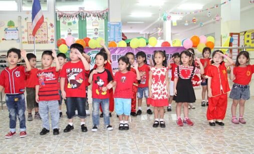 曼松德孔子学院日常教学对象从幼儿园到附中、大学和泰国本土教师各年龄层,虽然年龄跨度很大、学生汉语水平各有不同,但是孔院的教师在教学中针对各个年龄层、汉语水平的实际情况有针对性地备课,让学生学得开心、学得满意,极大提高了汉语学习的积极性。曼松德幼儿园是曼松德孔子学院众多教学对象中年龄最小、最可爱的一个。参加这次儿歌表演的是全园三个年级的百余个孩子,年龄在3-6岁之间。为了更好地完成此次表演,孔院教师和孩子们每天都进行认真的排练,每一个动作、每一个表情都反复练习。一遍遍地教孩子们练习,辛勤的汗水换来了孩子们可爱的笑脸、欢快的歌声和动作,幸福洋溢在孔院教师的脸上。