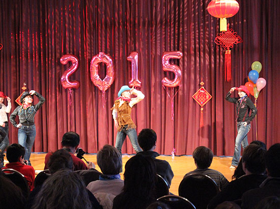 来自Sentinel High School和Big Sky High School的学生分别演唱了中文经典歌曲《让我们荡起双桨》和《我和你》。伴随着悠扬的古筝曲“渔舟唱晚”,蒙大拿大学孔子学院太极表演团队展示了“24式太极拳”,动作舒展飘逸,俨然一派太极宗师的风范,博得大家的一致赞叹。最后,来自密苏拉公立高中的学生带来一曲热辣劲舞《小苹果》将整台联欢会推向高潮。