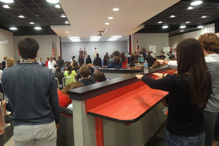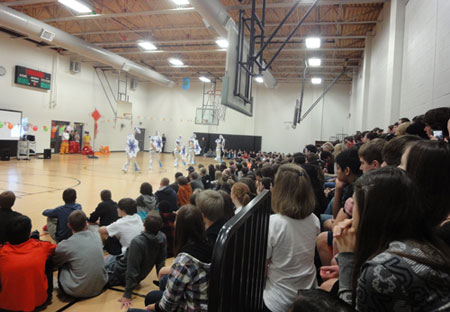 三巡在该学区新技术高中举行,上午开幕式上近500师生云集在学校体育馆,学区副学监布莱森博士致欢迎词,向汉办派出的三巡团表示谢意,对达拉斯德州大学孔子学院支持该学区四个孔子课堂并安排三巡团到该学区传播中国文化表示诚挚的敬意。