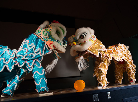 首先由圣克劳德大学校长Potter致贺词,他祝贺大家新春快乐,并肯定了孔子学院在这一年以来的工作成果,鼓励全校师生积极参加促进学习理解中国语言和文化的活动。接着,由Potter校长和两位教育局长、一位孔子课堂校长一起为孔子课堂揭牌。揭牌仪式结束后,由CAAM民间歌舞队为在场嘉宾和观众献上《红灯笼》、《百花争艳》等精彩歌舞表演。演出人员们优美的舞姿和精湛的技艺博得在场观众一阵又一阵喝彩和掌声。歌舞表演结束后,由圣克劳德大学中国学生学者协会带来的舞狮表演将整场演出推向高潮。