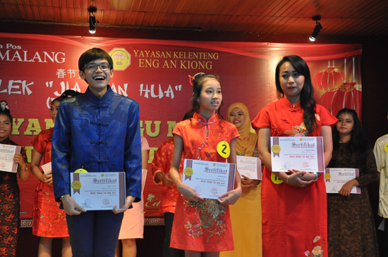 春节前夕,玛琅孔院积极参与了玛琅市“2015春节嘉年华”活动,于2月8日在玛琅国立大学承办了汉语朗诵、汉语歌曲演唱两项比赛,来自玛琅国立大学、普拉维查亚大学、玛中大学及玛琅市中小学的31名选手参赛,获奖选手还于2月17日在玛琅永安宫举行的颁奖晚会上作了精彩表演。在春节嘉年华活动中,玛琅孔院选派的节目表现抢眼,获得歌曲比赛第一名、朗诵比赛第二、三名、时装秀比赛第一名(获“玛琅姐姐”称号)的优异成绩。