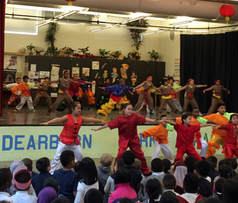 2015年伊始,汉语沉浸式教学在迪尔伯恩国际小学正式启动。尽管只有一个教学班,华盛顿州孔子学院的志愿者教师充分利用孔院的教育资源资,挖掘和借助本地社会力量,有序开展汉语教学和中国文化活动。志愿者教师为汉语班学生准备红包、灯笼等节日用品、组织他们学习歌曲《新年好》、制作对联、“福”字、布置教室、做汤圆等活动。为了让汉语教学和中国文化逐步在迪尔伯恩国际小学开枝散叶,志愿者教师到未开设汉语课的班级讲中国故事、介绍春节、做剪纸灯笼,提高大家对汉语和中国文化的关注。