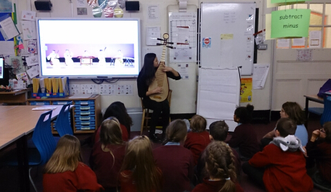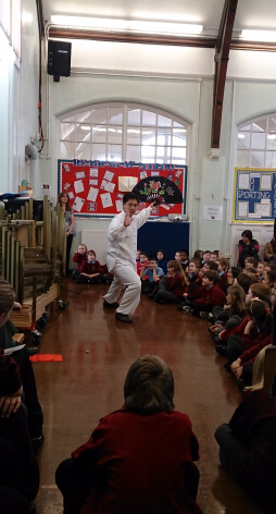 随后为了更好的宣传中国传统文化,2015年2月6日乐德罗小学特意举行了一场全校校会,校会上负责外语教学的Mrs Vandell老师为学生介绍了中国新年与十二生肖的故事。参加中国文化课后兴趣班的小同学们在全校大会上表演了喜庆腰鼓节目。来自南安孔院的太极周楠师傅给同学们讲解并展示了精彩的太极扇,同学们不禁为周师傅的一招一式叫好。全校校会结束后,同学们回到各自班级和班主任老师们一起体验一些基本的太极动作。