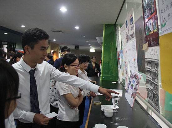 本次大赛的参赛教师设计了精美的参赛作品,有的传递了寓教于乐的教学思想,有的做了立体的汉语教室真实场景,有的捕捉了泰国学生渴望学习的神态。比赛中,每位老师都站上舞台,向领导、来宾和其他老师介绍自己的海报设计思路。经过激烈角逐,王倩倩、蔡炜浩、尚宇杰等六位老师分别获得一二三等奖。