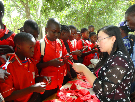 校长Eboh Victor先生体验剪纸