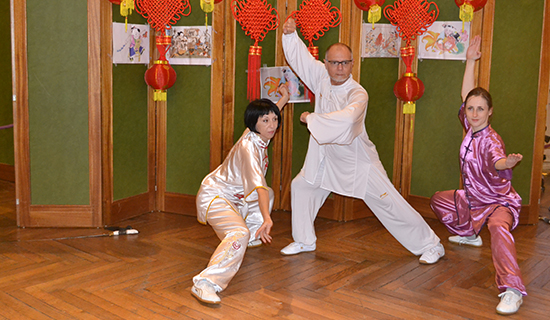 会前,余总领事与孔院的汉语教师们亲切交谈,充分肯定孔院各方面的工作,并鼓励图孔院取得更大发展。活动开始后,首先由副市长致辞,随后孔院武术队上演中国功夫,一下把人们带入热烈喜庆的节日氛围中。