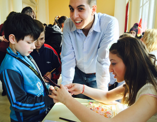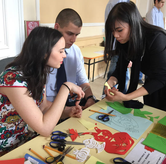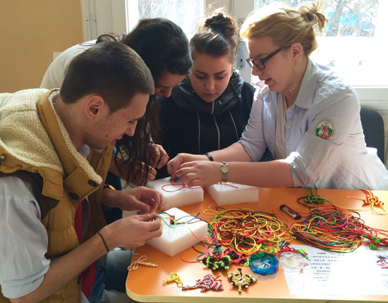 2月27日下午,暖暖的阳光透过保加利亚鲁塞市图书馆的窗户,映衬着一张张朝气逢勃的脸庞,笑语盈盈。在这座已经有103年历史的欧式建筑里,正在举办着一场关于中国文化的新春游园会。这是保加利亚大特尔诺沃大学(以下简称“大特大学”)孔子学院2015年“印象中国”系列活动的第一场,以游园会的方式向鲁塞市民展示了书法、中国结、剪纸、象棋、毽子和筷子等传统中国文化。