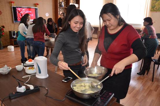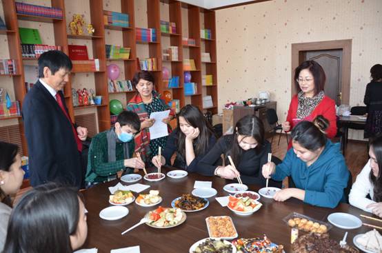 2015年2月27日,哈萨克斯坦阿克托别朱巴诺夫国立大学孔子学院组织的中国饮食文化体验活动“用筷子”、“包饺子”在孔子学院举行。三十多名学生感受了“用筷子”、“包饺子”活动。