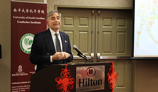 美国东部时间2月28日,南卡罗莱纳大学孔子学院举办2015年新春招待会。南卡罗来纳州教育厅官员、南卡州各学区语言项目协调员、中小学校长、中文项目负责人、南卡大学校长及教授,以及哥伦比亚华人协会代表等百余人齐聚一堂,共贺新春。