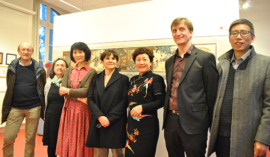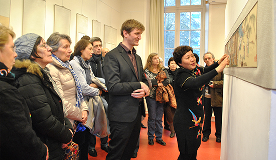 3月3日,法国布列塔尼孔子学院与山东博物馆联合举办的“鲁绣展”开幕式在孔子学院开幕。雷恩市副市长Joceline Bougeard、相关协会代表、留学生志愿者及法国民众等50多人应邀参加。