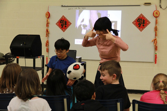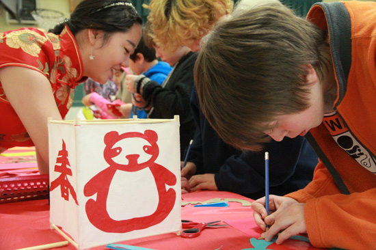 原定于2015年2月6日在Caldwell Road 小学的庆祝活动由于极端天气原因更改至2015年2月10日。Caldwell Road小学不在哈利法克斯市内,有近一个小时的车程。对于Caldwell Road小学的三百多名学生来说,中国文化体验日可能是充满未知和新奇的一天,但对于简鹏和他的妈妈来说,却是兴奋忙碌的一天。10岁的简鹏对圣玛丽大学孔子学院和中国并不陌生,他不仅曾参加过孔院举办的武术课以及三期夏令营,2014年9月起他还成为新开设的快乐汉语课的活跃分子。在汉语课上他学习了许多汉语语言知识和中国文化,文化日这天他“受聘”担任小助教老师,带领自己班的同学们学习节日用语。哈利法克斯当地学生家长们的意见对学校来说十分重要,简鹏的妈妈Cindy是促成此次文化活动的联系人之一,文化日当天她也作为志愿者在剪纸展示区热心地帮忙。同时作为志愿者帮忙的还有Caldwell Road小学一位老师的女儿Kate。短暂的一天里,Caldwell Road小学的三百多名学生秩序井然地对中国语言及文化有了亲身的体验。简鹏不仅小老师做得有模有样,在每个展示区也都耐心将自己从课上学来的一些基本中国文化知识介绍给同学,同学们都非常羡慕他参加了孔子学院快乐汉语这么棒的课程,了解这么多中国文化,汉语也说得字正腔圆。