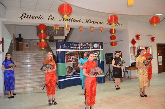 节目演出前,锡比乌省副中央特派员卢奇安•拉杜(Lucian Radu)代表锡比乌省政府向锡比乌孔子学院的全体汉语教师和学生表示节日的祝贺。卢奇安•布拉加大学校长邦德雷亚(Ioan Bondrea)表示,在锡比乌孔子学院全体汉语教师的共同努力下,锡比乌孔子学院被评为2014年先进孔子学院,这也是国家汉办对卢奇安•布拉加大学设立孔子学院的充分肯定。卢奇安•布拉加大学文学系主任米特雷亚(Alexandra MITREA)发表讲话,感谢锡比乌孔子学院对大学设立中文专业的支持,并对锡比乌孔子学院的汉语教师为中文专业做出的贡献表示感谢。
