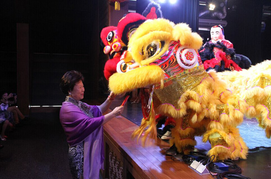 中国驻泰大使夫人初庆玲女士向舞狮队赠送红包