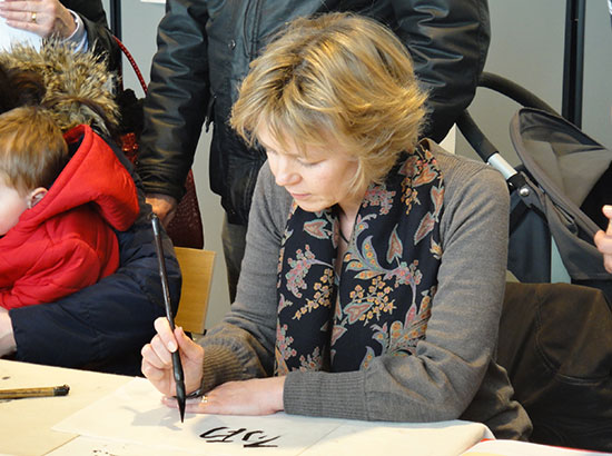 500余名当地民众参观了书展,他们饶有兴致地欣赏了王定成先生的书法作品。王定成先生现场挥毫,为当地民众创作了表现中国羊年喜庆主题的书法作品。不少参观者情不自禁地拿起毛笔,在王定成先生及孔子学院教师的指导下学写毛笔字。