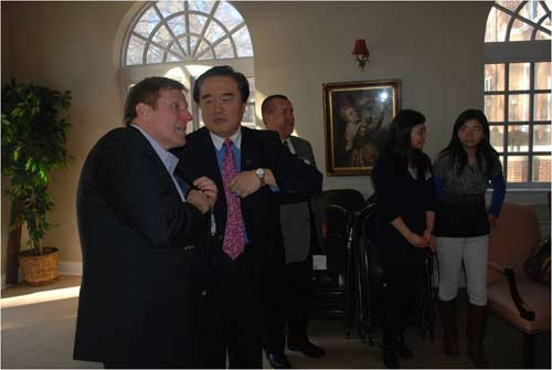 接待会现场:中阿肯色大学校长 Dr. Allen C. Meadors和国际事务副校长 Dr. Alexander N. Chen
