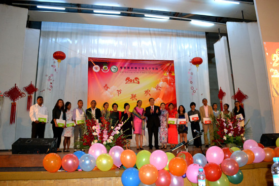 2月17日,在首都塔那那利佛,塔那那利佛大学孔子学院举办了2015春节联欢会暨“传播中华文化杰出贡献奖”、“中国大使奖学金”颁发仪式。马达加斯加高等宪法法院院长RAKOTOARISOA Jean Eric、中国驻马达加斯加特命全权大使杨民夫妇、高等教育和科研部部秘书长RALIJAONA Christian先生、塔那那利佛大学校长Panja RAMANOELINA及各学院院长、塔那那利佛大学孔子学院各教学点负责人、马达加斯加华人华侨、华商总会代表、中资企业代表及孔院全体师生、工作人员共计500多人参加了活动。杨民大使和梁伟平老师为马方院长祖拉桑及学术主任莫妮克颁发了“传播中华文化杰出贡献奖” 证书及奖金,为RAZAFIMANANTSOA Fenotiana 等13名马国学生颁发了“中国大使奖学金”证书及奖金。随后孔院学生们表演了精彩的中国歌舞,展示了良好的汉语水平和中华才艺,并用当地的传统舞蹈和歌曲表达对中方教师的美好祝福。中马两国汉语教师表演的舞蹈《红岛》、太极拳和马语歌曲将晚会一次一次地推向高潮。此次联欢会充分体现了孔子学院已然已经成为中马友好交流的平台。自2月6日至3月1日春节期间,塔那那利佛大学孔子学院的师生们还为当地华人华侨社团及马达加斯加中资企业奉献了多台精彩的文艺节目,充分展示了中华文化魅力,增进了中马两国文化交流。