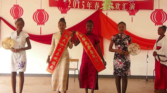 2月14日,在北部城市安齐拉纳纳,安齐拉纳纳高等技术学院、安齐拉纳纳大学和安齐拉纳纳法国中学汉语师生在当地华侨会馆举行了“2015年春节联欢汇演”。汉语教师们在华侨会馆入口处设置了“中国文化墙”,精心制作了有关春节的剪纸、插画和贴图,并根据学生的兴趣在文化墙上设置了“功夫”板块和“瓷器”板块。文化墙不仅吸引了学生的注意,还激发了前来观看演出的学校负责人、学生家长和当地华侨的兴趣。师生门用歌曲、武术串烧、吉他弹唱、古文朗诵、中国服装表演等多种形式演绎了一场精彩的晚会。