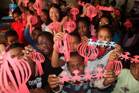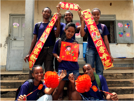 2月12日,昂比卢贝糖联子弟校为了迎接中国新年,在学校举行了学生写汉字、画熊猫、剪纸等具有中国特色的庆祝活动,参与人数达300人。那马吉亚糖厂子弟学校也举办了《剪纸喜迎中国年》活动,参与人数达230人。