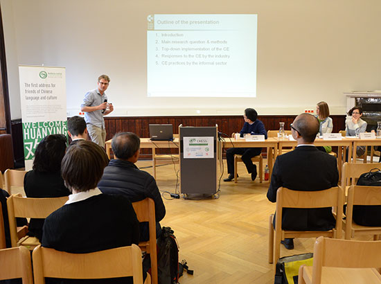 本次研讨会聚焦中国环境保护的历史发展,现状与问题,挑战与机遇,致力于用跨学科角度探讨中国环保与治理的方法。在随后的时间里,于晓刚先生和Andrew Mertha教授分别进行主旨演讲,回答了与会者提问。来自牛津大学、康奈尔大学、哥廷根大学,法兰克福歌德大学,柏林自由大学,维也纳大学,维也纳技术大学等年轻学者分别作了专业发言,针对电子垃圾处理、船舶回收、防治荒漠化等议题提出自己的看法,现场气氛非常热烈。