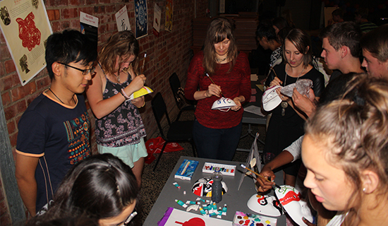 趣味游戏环节中,孔院教师设计并组织了很多富于中国传统特色的游戏,如猜字谜、画脸谱、剪纸、托乒乓球走路、起中文名字、夹豆子、套环等。其中猜字谜、画脸谱、剪纸使大家充分感受到中国汉字、绘画、京剧脸谱的魅力,夹豆子和套环等项目则一次次将活动气氛推向高潮。