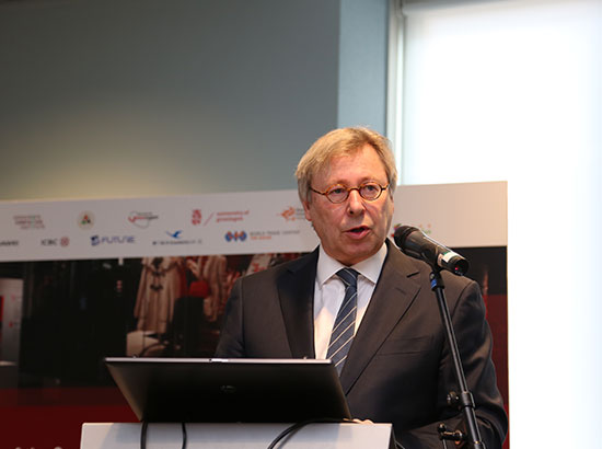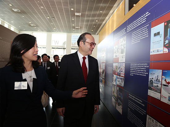 格罗宁根市市长Peter den Oudsten在之后的讲话中,感谢了格罗宁根孔子学院在积极构建两国关系,搭建合作平台方面所作出的贡献。他表示,加强与中国的商务往来及紧密合作,是格罗宁根市政府在接下来几年中的首任之一。而为了加强两国关系,目前双方需要做的是促进文化及知识方面的交流,这正是格罗宁根市政府及学术机构一直以来关注的重点。市长认为,本次展览呈现了中国经贸发展及民生变化的历史背景,因此给予荷兰人民更多机会了解他们的伙伴,并寻找更多共同发展的商机。他表示,格罗宁根市政府希望能够在未来继续致力于两国双边关系的发展。