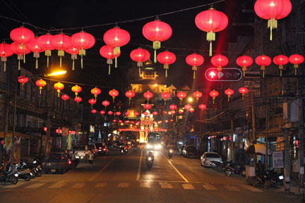 素有“燕子城”之称的泰南边境小城勿洞市近来失去了往日的宁静。主干道上,一千五百个大红灯笼高高悬挂;大街小巷,随处飘扬着恭贺新春的歌曲声;家家户户贴春联、挂“福”字;大人小孩穿唐装,着旗袍。成千上万只小燕子也叽叽喳喳,快乐地飞来飞去。勿洞全城充满了新春佳节喜庆祥和的气氛。