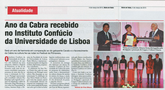 2月25日,里斯本大学孔子学院举行了2015羊年春节庆祝活动。本次活动的主题是为了展示孔院和孔子课堂的办学成果、答谢社会各界对孔院发展的大力支持、接受社会捐赠,和新老朋友共庆新春佳节,共谋合作与发展。