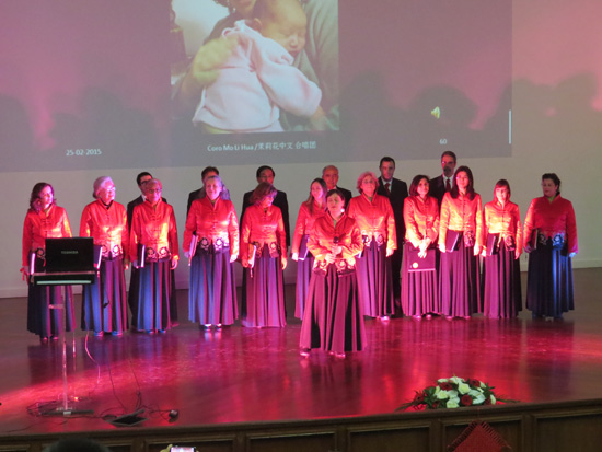 来自葡萄牙首家孔子课堂——里斯本大学孔院下设圣托马斯孔子课堂的小朋友们的婉转歌声拉开了晚会的序幕,仅学了4个月汉语的孩子们用优美动听的《茉莉花》和欢快的《恭喜你》赢得了全场的惊喜。