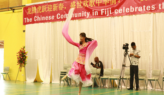 2月22日,在中国驻斐济大使馆倡议下,由斐济华人协会主办,南太平洋大学孔子学院协办的“欢乐春节系列之一斐济华人团拜会”在逸仙学校举行。斐济总理乔萨亚·姆拜尼马拉马夫妇、中国驻斐济大使馆临时代办杨朝晖、使馆工作人员、孔院师生及各界华侨华人等约900人欢聚一堂,共贺新春。