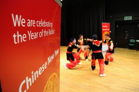 为了迎接中国兔年的到来,在春节期间,伦敦中医孔子学院在英国多地举办了“欢乐中国年孔子学院巡演活动”。中外师生欢聚一堂、各展才艺,以精彩绝伦的中国功夫、传统歌舞表演为大家奉献了一场别样的中国文化盛宴。