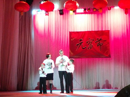 在孔院学习汉语的一家四口演唱《让爱驻我家》