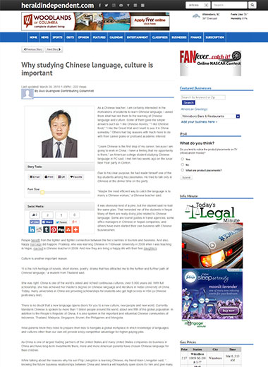 近日,美国本地报刊«Herald Independent »及其在线网站与长老会学院孔子学院合作开设了“中国之窗”专栏,专门向当地读者和网友介绍中国与中国文化。