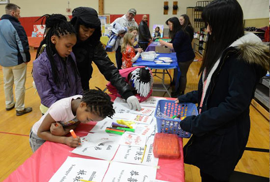 近日,美国阿尔弗莱德大学孔子学院辐射学校北街小学举办新春游园会,庆祝中国新年,共吸引500余名师生及家长参加。