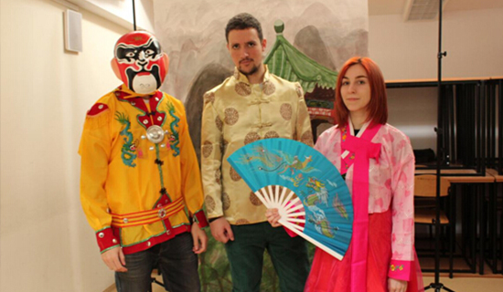 李奇琨主任的京剧演唱把活动气氛推向高潮,波兰学生表演的武术震惊四座。在活动区里,最吸引人的是书法,学生们排队等待把自己的名字翻译成汉语。活动还增设了照相环节,波兰学生可以穿上中国的传统服饰照相留念,中餐馆为大家提供了丰富美味的中国传统食品。