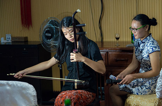 随后,来自圣德安烈双语学校的学生带来了中文歌曲《明天会更好》,两名小学生充满激情、忘我的演唱博得了全场阵阵掌声,也将晚会推向高潮;由孔子学院专职教师贾月表演的二胡独奏《赛马》,优美的旋律、精湛的演绎瞬间将观众拉回塞外草原,勾起无尽的思乡之情。