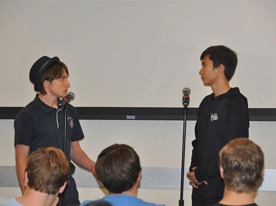 初级组比赛中,来自Tempe高中Ethan Czuppa和Tony Tipton用轻松诙谐的语气谈论最喜欢的中国煎饺,自然的表情、标准的发音和连贯的对话赢得了评委和观众的一致好评,获得初级组冠军。